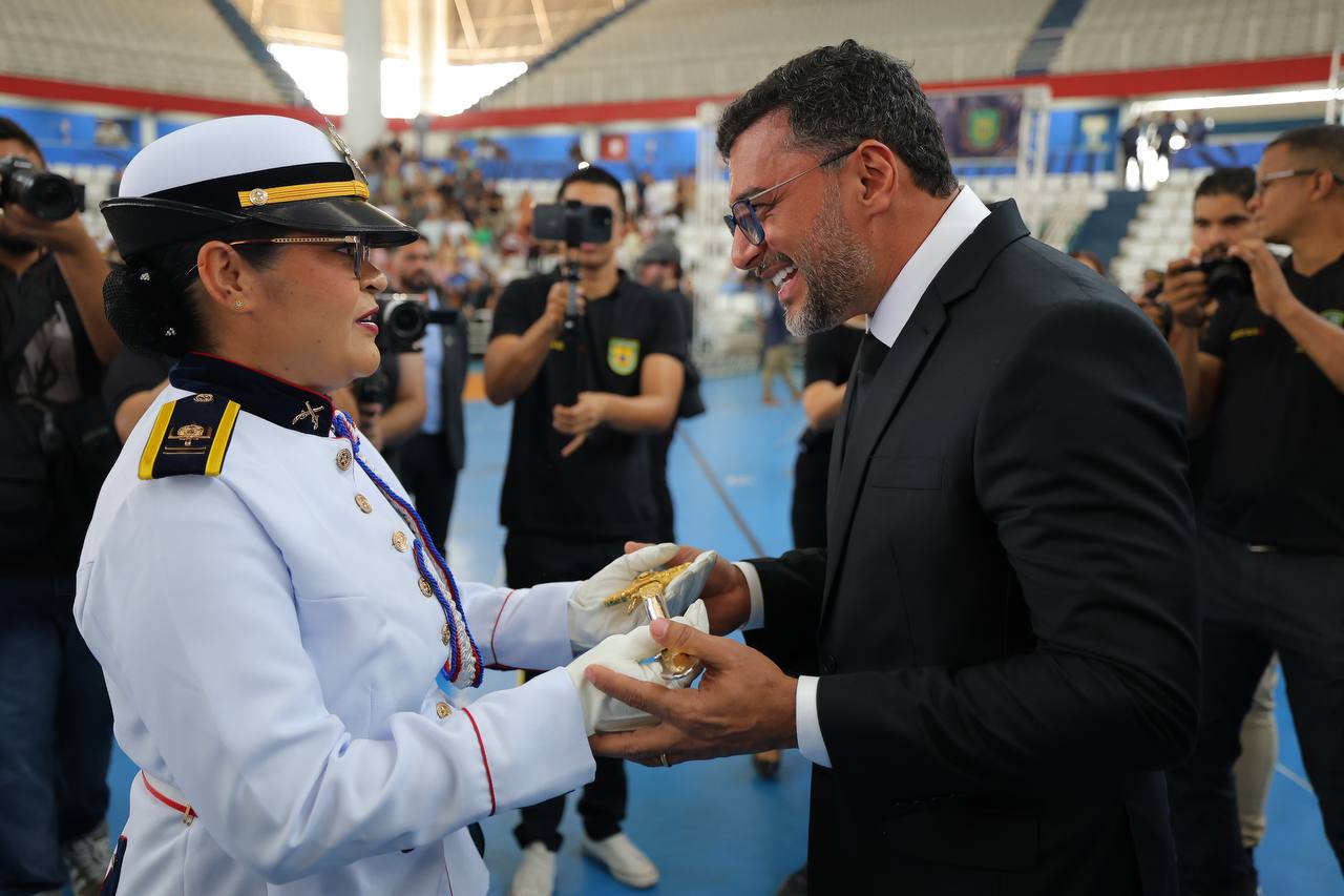 “Nós estamos entregando o espadim para 100 alunos que estão no curso de formação de oficiais. Eles estão aí com mais de 50% do curso já concluído, e o espadim é um ritual no curso de formação em que os alunos fazem um compromisso público de seguir os princípios e a disciplina e os valores da carreira militar”, afirmou o governador Wilson Lima.