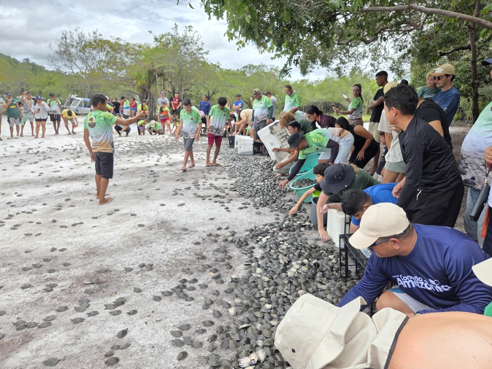 As ações seguem a metodologia do Projeto Pé-de-Pincha, da Universidade Federal do Amazonas (Ufam), que envolve comunidades ribeirinhas na proteção das áreas de desova de quelônios. O trabalho inclui o monitoramento das praias, a coleta e proteção dos ninhos, a transferência dos ovos para áreas seguras, conhecidas como chocadeiras, e o acompanhamento do nascimento dos filhotes até o momento da soltura.